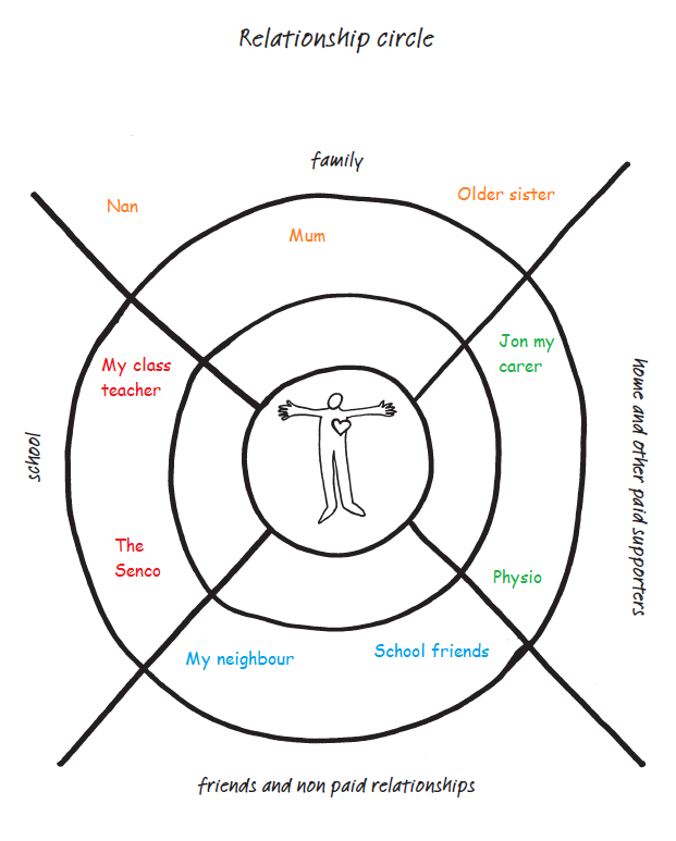 A good network of relationships might include family, friends, a teacher, care workers or other people.